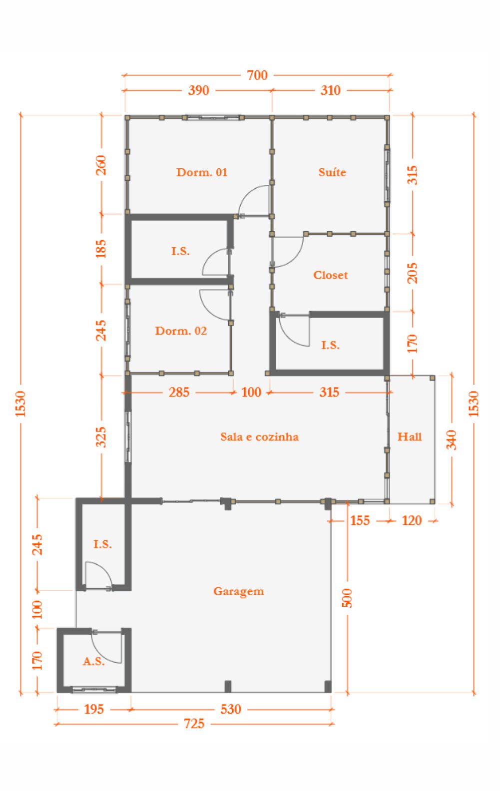 Materiais brutos (areia, pedra, cimento, tijolo, ferragens), pregos, parafusos, telhas, cerâmicas, louças sanitárias, vidros, tintas, materiais elétricos e hidráulicos, não estão inclusos e devem ser adquiridos pelo cliente.