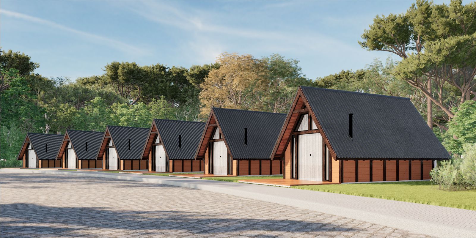 Fornecemos toda a madeira necessária para execução do modelo selecionado (Montantes para estrutura, pranchas de parede com 40mm, cintas para amarração das paredes, caibros, vigas, travessas, pontaletes, ripas para tarugamento do forro e das telhas, espelho de beiral para acabamento do telhado, forro interno, réguas para fiação elétrica, rodapé, meia cana, assoalho para piso superior, etc…