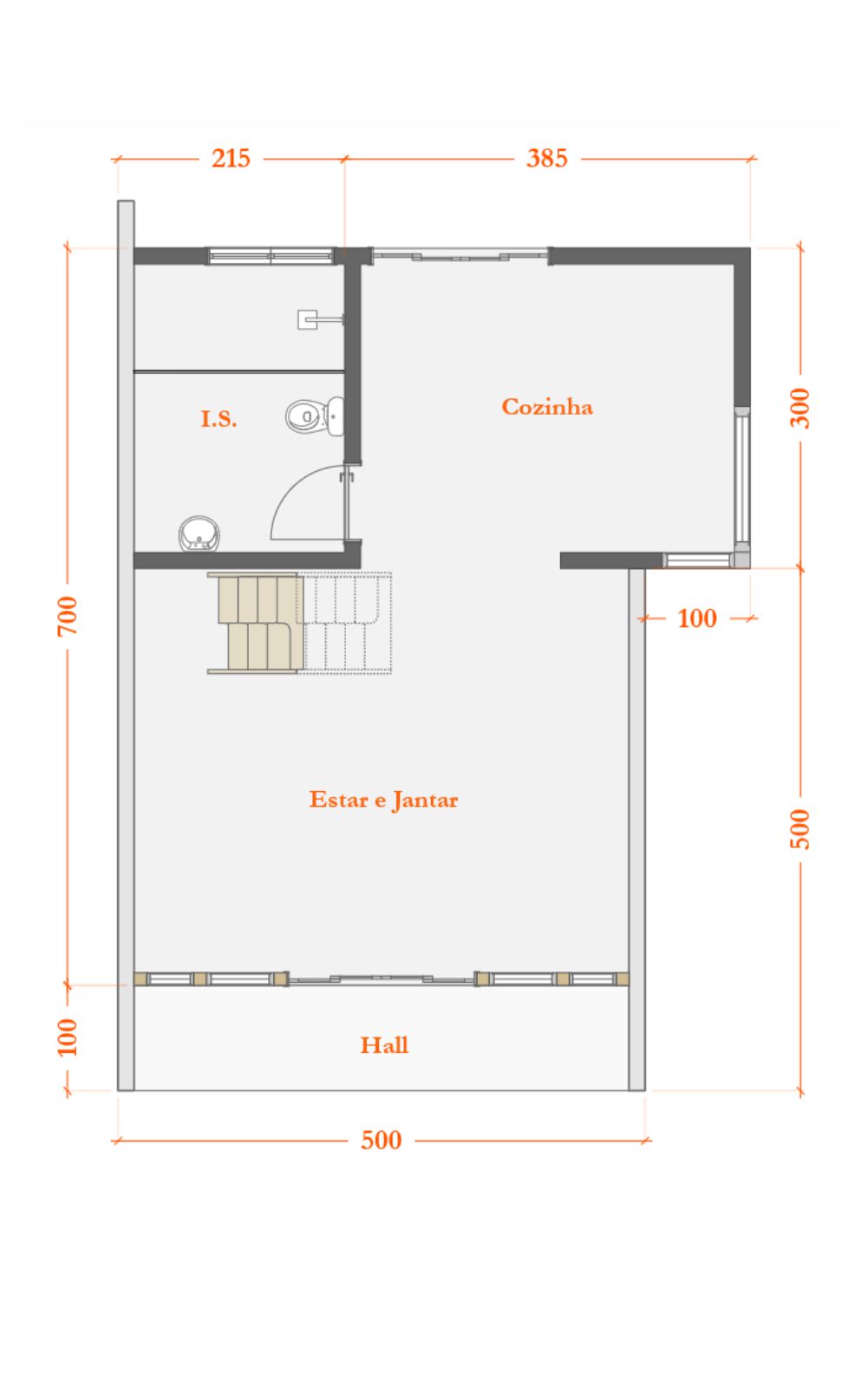 - VARANDA FRONTAL COM 5 M²