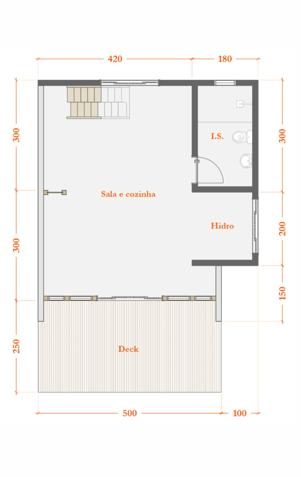 CHALÉ PONTA GROSSA 56 M² + 12 M² DECK – UM DORMITÓRIO
